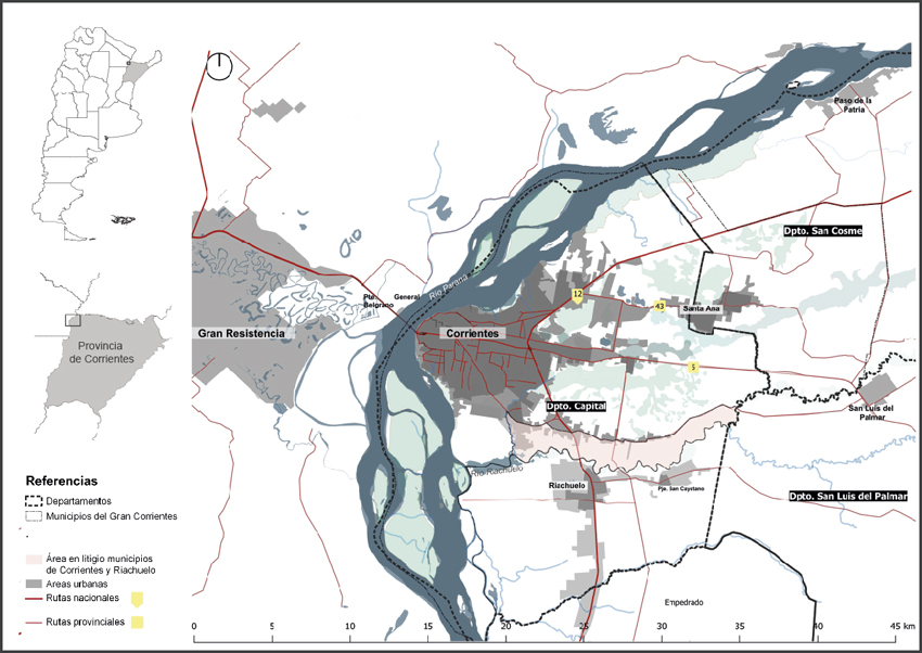 Este territorio ha tenido cambios importantes en las últimas décadas, como su dinámica de crecimiento y conformación de -lo que se ha comenzado a denominar no formalmente- el Gran Corrientes, área metropolitana consolidada a partir de un proceso de crecimiento disperso y suburbano de la capital, influyendo en el crecimiento poblacional y de ocupación del suelo de localidades cercanas como Santa Ana y Riachuelo. A su vez se relaciona a una microregión urbana vinculada a otra importante área metropolitana como es el Gran Resistencia (provincia del Chaco) localizada al otro lado del río Paraná, y a un conjunto de localidades en el territorio correntino en su triángulo noroeste como San Luis del Palmar, Paso de la Patria, San Cosme, El Sombrero, Itatí, entre otras.