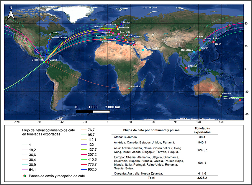 Para el análisis de los teleacoplamientos se consideraron los flujos comerciales de los cultivos de café, caña de azúcar y piña desde Cajón hacia mercados nacionales e internacionales. El análisis para los primeros dos cultivos se hizo para el año 2021, mientras que el de piña se hizo para 2019 debido a que es el año más próximo con suficientes datos. Una limitante para este análisis fue el nivel de agregación de los datos, ya que, de haber, muchos eran a nivel cantonal y no distrital o a un nivel más desagregado.