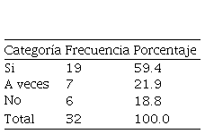La Tabla 1 muestra la culpabilidad del presidente de una asociación, con la posibilidad de atribuirle un hecho punible por no cumplir con sus fines. De un total de 32 operadores del derecho, el 75.0% manifestaron que la culpabilidad es del presidente de una asociación; donde si cabe la posibilidad de atribuirle un hecho punible por no cumplir con sus fines. Por otra parte, el 15.6% indicó que no cabe la posibilidad de atribuirle un hecho punible por no cumplir con sus fines y el 9.4% dio como respuesta que a veces cabe la posibilidad de atribuirle un hecho punible por no cumplir con sus fines. Por consiguiente, la culpabilidad es la valoración del comportamiento atribuido personalmente de un ser humano, cuando el individuo ha cometido un hecho ilícito.