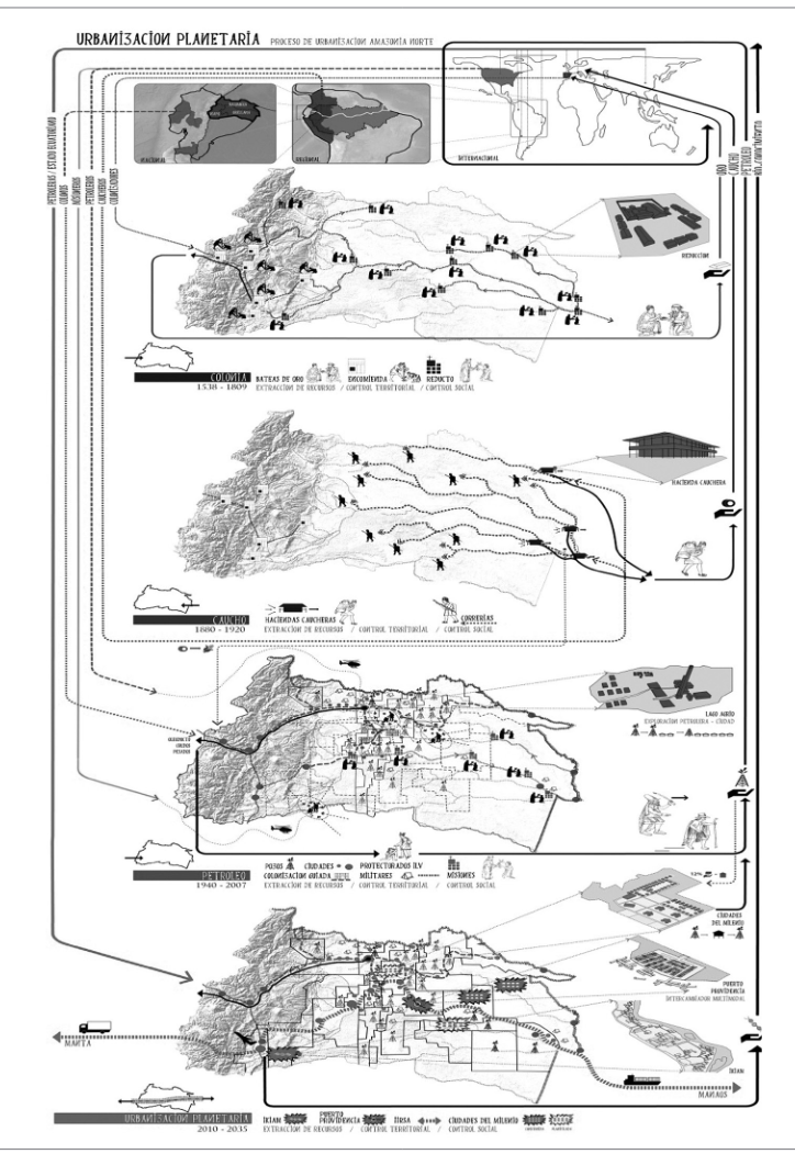 Abstract: This article explores the possibilities and limitations of postneoliberalism under the conditions of planetary development. Planetary urbanization conceptualized as the tendency towards real subsumption of space to capital on a global scale, through which capital is strengthened as an abstract form of domination. Criticizes the neo-structuralist agenda «systemic competitiveness» and its influence in the post-neoliberal project in Latin America, arguing that it tends to strengthen the capital as a subject. It focuses on the development of the Ecuadorian Amazon, disaggregate the real subsumption of space in three dimensions: territory, nature and everyday life.