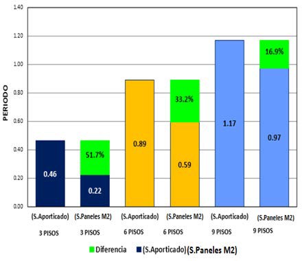 La disminución del periodo fundamental de vibración de las edificaciones de hormigón armado como de acero estructural, es resultado de la inclusión de la mampostería M2 dentro del sistema aporticado.