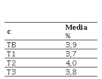 La fase del proceso de compostaje evaluada fue la fase termófila debido a que en ella el proceso alcanza la mayor temperatura del proceso, así, TB alcanzó 44 °C, T1: 44,9 °C, T2: 46,0 ºC y T3: 42,5 °C. La FAO (2013) establece el rango óptimo para esta fase de 45 °C a 70 °C. Según Pravia (2001) citado en Eche (2013) menciona el rango de 40 °C a 75 °C “para eliminar todos los organismos mesófilos patógenos, hongos, esporas, semillas y elementos biológicos indeseables”. En estudios realizados por Gordillo y Chávez (2008), al usar poblaciones microbianas locales la temperatura fue menor a los 45 °C mientras que al utilizar microorganismos comerciales la temperatura superó los 60 °C. De este modo, la existente entre los resultados de la investigación y estudios previos radica en la utilización de diferentes tipos de inóculos microbiológicos y materiales a compostar empleados.
