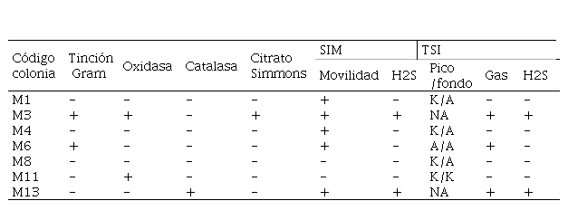 Con los resultados obtenidos de las pruebas bioquímicas más los criterios macroscópicos y las características específicas de las diferentes especies bacterianas descritas teóricamente, se seleccionaron para la investigación las cepas de las especies Proteus mirabilis y Citrobacter freundii.
