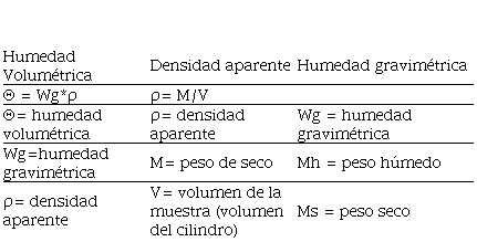 Fórmulas para utilizar en el cálculo de humedad volumétrica