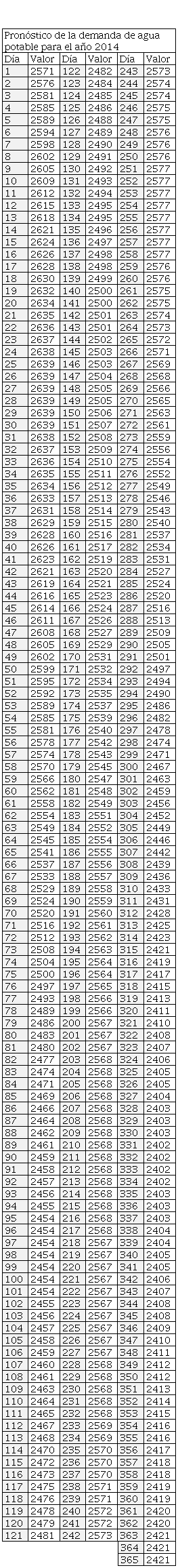 Valores de pronóstico del caudal de agua potable para el año 2014 (tabla 11):