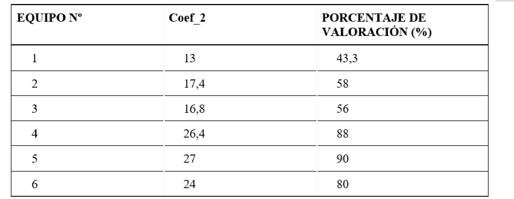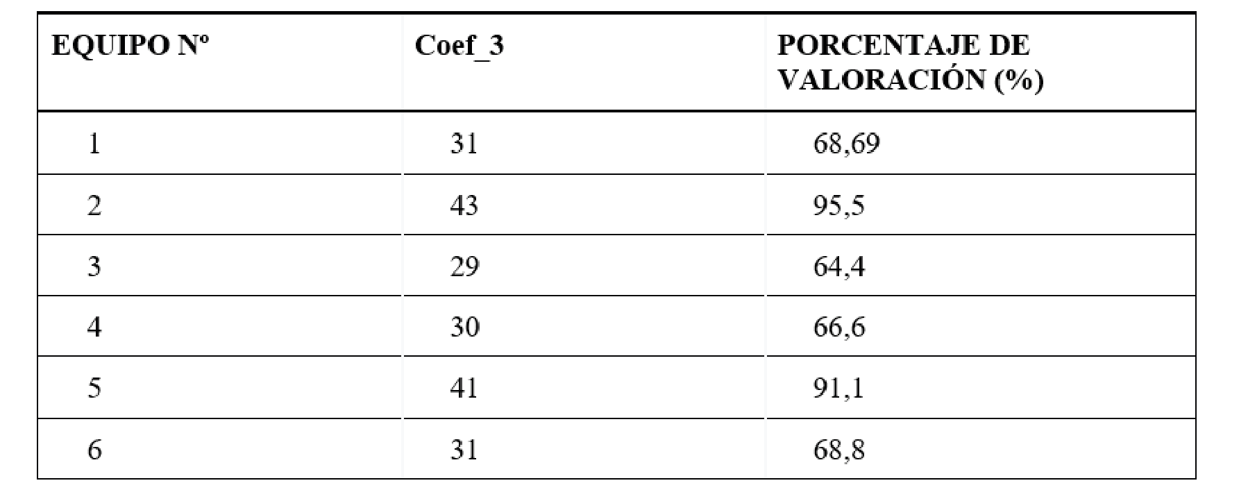 Este coeficiente tuvo una valoración máxima de 30 puntos y los resultados se muestran en la Tabla 4.
