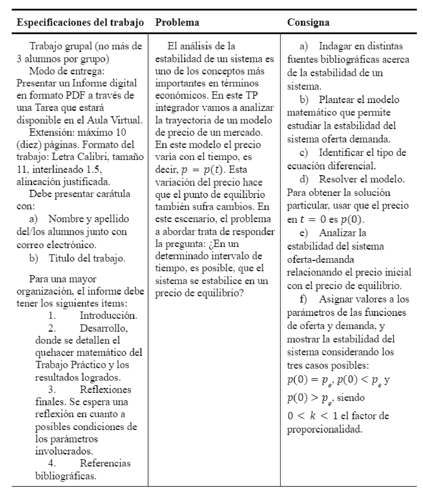 La dimensión “desarrollo matemático” valora el desarrollo matemático y en él se evalúan el planteo de un modelo y la resolución de la ecuación diferencial ordinaria determinada por éste, la cual, en este, caso se encontraba parametrizada. Asimismo, se tiene en cuenta el análisis de la estabilidad del sistema, los ejemplos propuestos por los estudiantes y la correcta interpretación de los resultados.