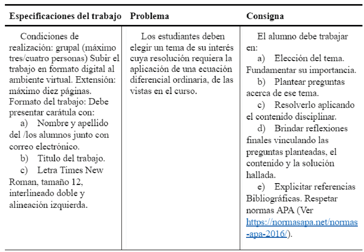 Si bien continuaron con inconvenientes en la redacción, hubo un avance en el formato de la presentación del informe y en la ortografía. En cuanto a la dimensión matemática, se mantuvo entre Bueno y Muy bueno. Sin embargo, se destaca que los estudiantes se “animaron” a plantear un tema abierto y a partir de él, formular un modelo que involucre una ecuación diferencial. Algunos grupos se “animaron” incluso a trabajar con un sistema de ecuaciones diferenciales, por tratar un tema muy actual como lo es el comportamiento de los contagios por Covid-19. Incorporaron rápidamente el uso de la tecnología para resolver las tareas dadas y los trabajos prácticos. A sugerencia de los docentes utilizaron GeoGebra, planilla electrónica (Microsoft Excel) y procesador de texto (Microsoft Word).