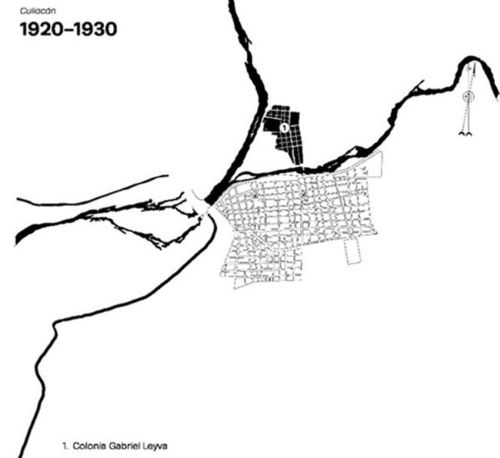 Para 1930, la población llegó a 18 202, lo que nos arroja un promedio de 3640 viviendas, un aumento de 433 viviendas respecto al censo de 1921. Gran parte de este crecimiento fue en la colonia Gabriel Leyva, la cual fue creada en 1924 (AHCES, Periódico Oficial del Estado de Sinaloa, 14 de agosto de 1924, número 97), siendo el primer desarrollo habitacional de la época posrevolucionaria. Pese a un aumento significativo, este no causó gran sobresalto al tejido urbano tradicional, pero abrió las posibilidades de rebasar la barrera del río Tamazula. A partir de entonces, el sector norte inició un crecimiento incesante hasta la actualidad (Figura 3).