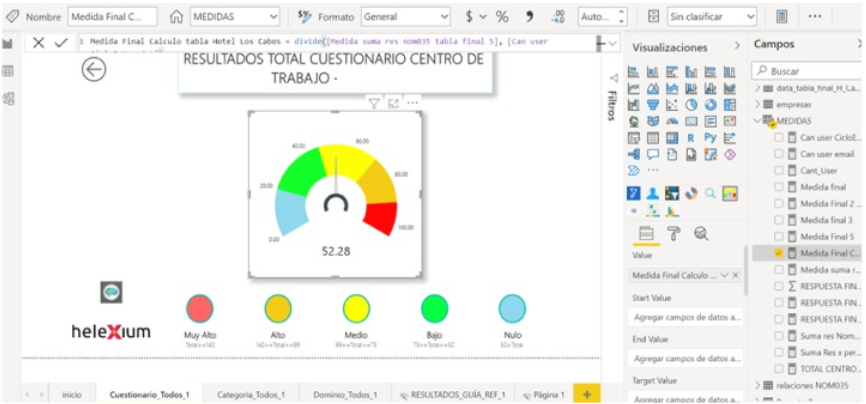 Las evaluaciones se realizaron a través de un software en línea de la empresa Helexium, programado con inteligencia de negocios (BI Business Intelligence) que es una disciplina muy antigua y que ha ido evolucionando con el tiempo y adaptándose a la evolución de las tecnologías de la información y las comunicaciones más disruptivas. Analítica de negocios (BA, Business Analytics o Analytics, términos cada día más utilizados en consultoría y en estrategias de negocios) es una disciplina complementaria y subconjunto de inteligencia de negocios que se apoya en técnicas de análisis de datos (Joyanes, 2019).