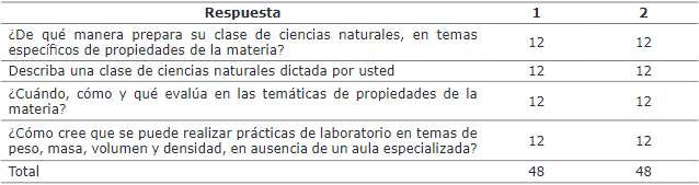 The specific objectives were: To identify, through a diagnostic test, the concepts handled by sixth-grade students, to describe the pedagogical practices implemented by natural science teachers for the teaching of these concepts, to design and carry out a physical methodological strategy to strengthen them, as an alternative to the absence of the laboratory in the educational institution and, evaluate the implementation of the methodological strategy to analyze the impact on them. Likewise, the problem question was posed, as follows: Do laboratory practices with materials of daily life allow strengthening the conceptual knowledge of weight, mass, volume, and density in sixth-grade students? data with which the research was developed.