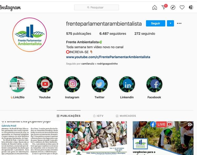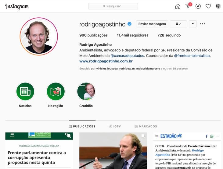 O deputado federal com maior participação nas postagens do Instagram da frente parlamentar é o coordenador Rodrigo Agostinho. O recorte temporal foi baseado na seleção de postagens de 12 de março de 2020 a 10 de setembro de 2020. A escolha desse período se justifica pelo fato de, além das questões relacionadas às ODS, também querermos avaliar se o parlamentar utilizou sua rede social para relacionar sua atuação com a pandemia da COVID-19 e as políticas públicas.