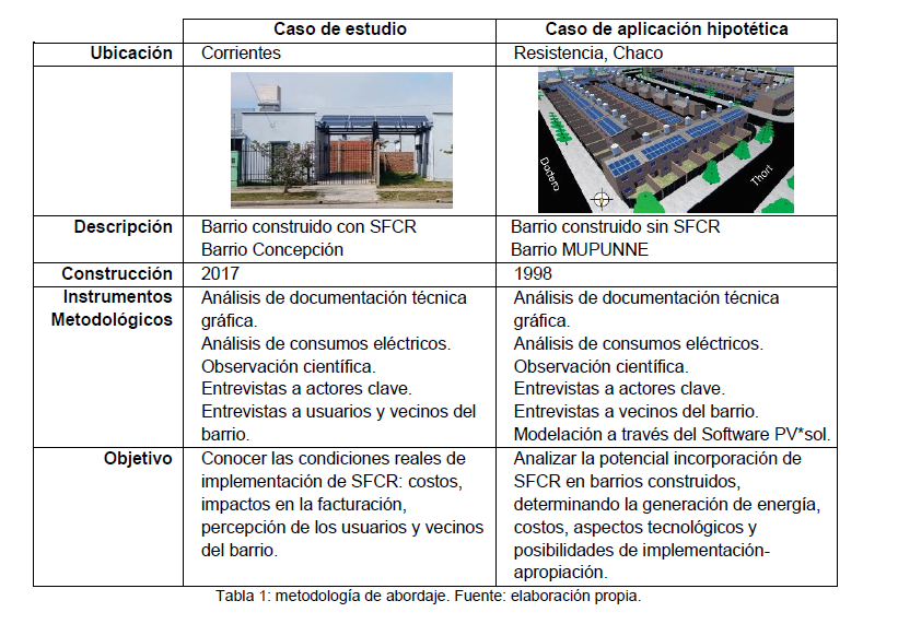 El objetivo general del presente trabajo es comprender las posibilidades de implementación técnica y apropiación sociocultural de SFCR, tomando como campo de aplicación los barrios de viviendas de la región urbana conformada por el AMGR y Gran Corrientes (López y Romagnoli, 2020).