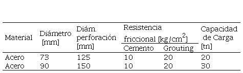 A tales efectos, se propone la ejecución de micropilotes hincados de caños de acero sin costura, denominados Manesmann, de 73 o 90mm de diámetro externo, acoplados por soldadura cada 3 metros, hasta llegar a la resistencia de rechazo del terreno, la que deberá ser compatible con el horizonte de fundación previsto en el estudio de suelos. La ejecución mecánica de pilotes resulta inviable en razón de la imposibilidad de su excavación dentro de los locales del edificio. Las bases aisladas serán recalzadas mediante estos micropilotes, que recibirán la carga a partir de la resistencia friccional producida entre el hormigón de la base y el fuste de acero del micropilote, tal como se observa en la Figura 2. Para ello se perforará la base con corona diamantada, minimizando las vibraciones a inducir sobre la estructura, de manera de hincar el caño en el suelo a través del hoyo practicado. Luego, se rellenará el espacio entre el hormigón y el acero mediante un relleno de mortero grouter, a fin de garantizar la transferencia de carga. La cantidad de micropilotes requerida para el recalce es función de la carga que recibe cada base aislada y se presenta en la Figura 4.