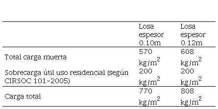 Síntesis del análisis de carga de losas para la utilización residencial del edificio