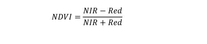 El NDVI se obtiene dividiendo la diferencia entre la reflectancia en el infrarrojo cercano (NIR) y la reflectancia en la banda roja (Red) por la suma de ambas.
