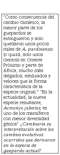 Posible narración académica de la situación planteada respecto a la evolución del guepardo Acinonyx jubatus.