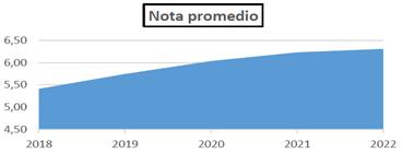 El análisis del promedio anual de alumnos aprobados, a partir de los datos del sistema SISINFO (Sistema de Información- UNRC), evidencia una mejora progresiva en las calificaciones entre los años 2018 y 2022. La nota promedio fue de 5,41 en 2018, 5,45 en 2019, 6,06 en 2020, 6,23 en 2021 y 6,31 en 2022 (Gráfico 3). Sin embargo, es necesario aclarar que la comparación del porcentaje de aprobación en los exámenes finales entre los años anteriores y posteriores a la implementación del proyecto, no puede realizarse de manera directa, debido a que muchos estudiantes que se presentaron a rendir el examen final de la asignatura pertenecen a cohortes previas a la innovación, ya que durante la pandemia (por sugerencias institucionales) se otorgaron extensiones de regularidad, y un número considerable de inscriptos no se presentó a rendir. Por ello, aunque los promedios de notas muestran mejoras, estas deben interpretarse con cautela respecto a su relación directa con la implementación del proyecto.