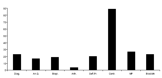 Los métodos de diagnóstico (Diag.) y de análisis químico de plaguicidas (An.Q.), constituyen las metodologías de trabajo para el servicio que ofrecen directamente los Laboratorios Provinciales de Sanidad Vegetal (LAPROSAV), introducidas desde los 80´s y perfeccionadas o ajustadas durante y con posterioridad a los 90´s, las que se someten a una mejora y modernización continúa. Se puede apreciar que, las tecnologías han sido mayores para los bioplaguicídas (Biopl.) que para los entomófagos (Arth.), pero en ambos casos garantizan producciones de medios biológicos para la mayoría de los problemas fitosanitarios, incluyendo los casos de nuevas plagas exóticas introducidas.