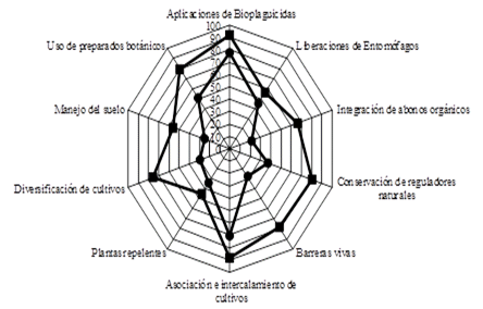 Por tanto, además del control biológico, se han generado y adoptado por los agricultores nuevas tecnologías fitosanitarias (Figura 5), las que requieren de menores gastos económicos, son de menor impacto ambiental y se ajustan más al modelo de fincas a pequeña escala.