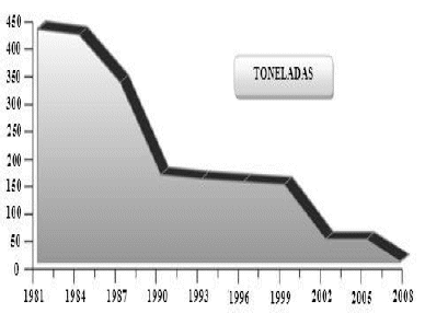 Por otra parte, se presentan los resultados sobre la reducción del consumo histórico de bromuro de metilo en Cuba hasta su eliminación total en el año 2008 (Figura 6).
