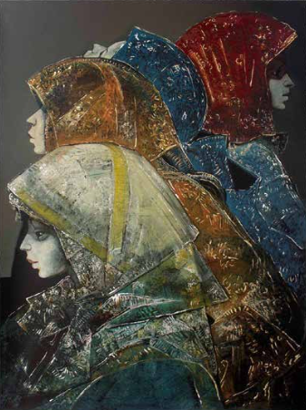 En la década del ´90, después de un lustro de vivir en Madrid, su universo creativo se ha expandido, sus mujeres se enaltecen, su nivel técnico alcanza la maestría y recibe en Madrid premios y reconocimientos que impulsan su carrera.