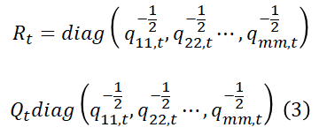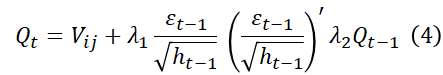 (3)Según el planteamiento de Engle, la matriz presentada en la ecuación 4 está compuesta de elementos que siguen un modelo GARCH (1,1)