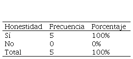 La honestidad a la hora de ofrecer o de exponer los planes integrales de las funerarias es un componente muy importante, ya que de alguna u otra manera ese es uno de los valores o de las habilidades que llevan a seducir a un cliente. En este caso, según Sócrates y citado por Diario concepción (2016) “la honestidad es un valor o cualidad propia de los seres humanos, relacionado con los principios de verdad y justicia y con la integridad moral”. Con la anterior referencia y basándose en las estadísticas, el 100% de las funerarias de Ocaña son honestos a la hora de exponer sus planes integrales al cliente.