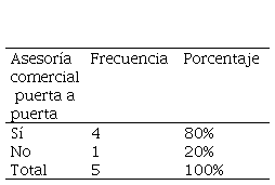 Para esclarecer un poco sobre la asesoría puerta a puerta, son aquellas visitas que los asesores comerciales de las empresas llevan a cabo en una población específica con el fin de que la personas tengan conocimiento sobre los planes que manejan u ofertando ciertos paquetes. La asesoría puerta a puerta es una manera de hacer Marketing y Branding debido a que de esa manera se está llegando al cliente sin necesidad de que este tenga que dirigirse a las instalaciones, es por ello que para algunas empresas resulta siendo esta una estrategia esencial. Las estadísticas afirman que el 80% de las funerarias en Ocaña aplican en sus procesos la asesoría puerta a puerta y que el 20% restante no maneja dicho proceso.