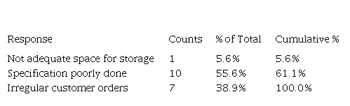 From Table 4 above, 10(55.6%) of the respondents indicated that the major challenge faced by TAZARA in inventory management is poor specification. 7(38.9%) stated that irregular customer orders were the main challenge, while 1(5.6%) stated that insufficient storage space was the main challenge.