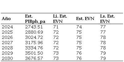Análisis de la EVN con el PIB per cápita o por habitante a precios actuales