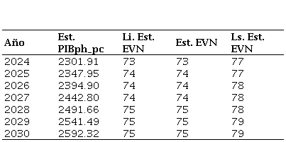 Tabla 11. Estimación del PIB per cápita, a precios constantes de 2015, para Nicaragua 2024-2030.