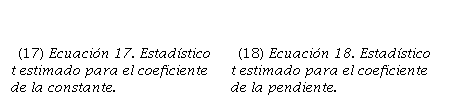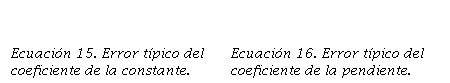 Para la estimación de los errores típicos de los coeficientes de la constante y la pendiente, se hizo uso de las siguientes expresiones: