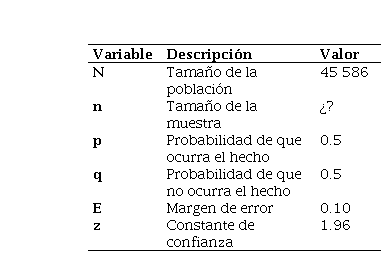 El análisis documental se basó en la revisión de libros, sitios web, artículos e informes científicos de carácter empírico, teórico, crítico y metodológico existente y disponible; encontrados en las principales bases de datos libres de la web, sobre la investigación de mercados turísticos. Para la obtención de información primaria, se empleó el método de la encuesta, a partir de entrevistas estandarizadas y presenciales. En este sentido, los datos de la presente investigación fueron recogidos durante el periodo de noviembre del 2023 a diciembre del mismo año. El total de encuestados se determina considerando como población el total de visitantes franceses que arribaron a Cuba, en el 2023 hasta el mes de octubre, mes anterior a la investigación (45 586) (ONEI, 2023), para lo cual la muestra ideal resultó ser de 97 turistas franceses, como se muestra en la tabla 2.