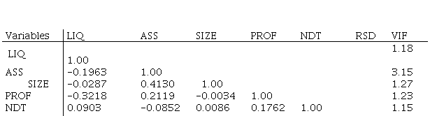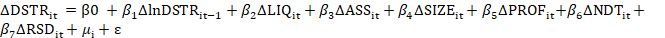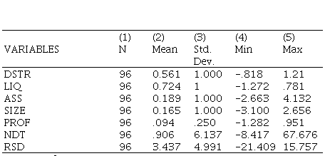 DSTR = f (LIQ, ASS, SIZE, PROF, NDT, RSD) (1)