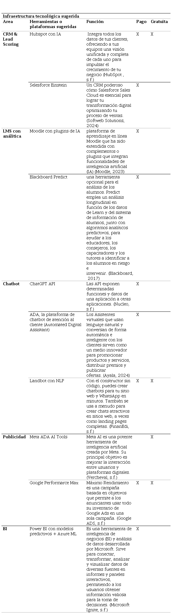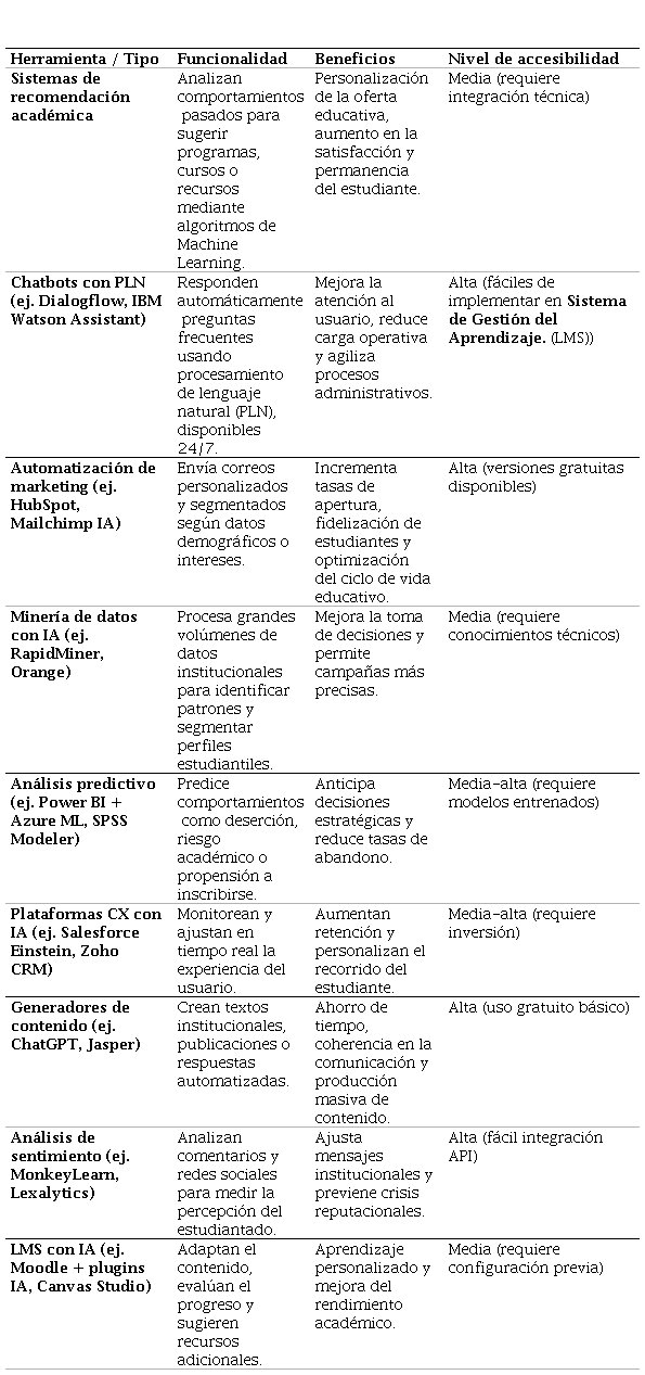 superior. Al integrar tecnologías como sistemas de recomendación, análisis predictivo y automatización de la comunicación, se logra una mejora significativa en la experiencia del estudiante, en la toma de decisiones institucional y en el posicionamiento de la marca académica en entornos digitales.
