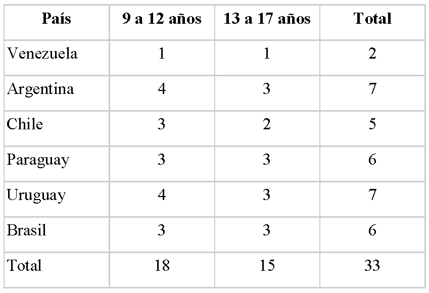 En términos generales, se puede concluir que la aplicación metodológica fue exitosa y más que enriquecedora. En toda la investigación, solo se descartó un taller, puesto que el mismo no cumplía con algunos requisitos mínimos previamente definidos para poder ser incorporado en el estudio. Por otro lado, el único país que no logró alcanzar los tres talleres mínimos fue Venezuela. Tras evaluar los resultados de cada uno de los encuentros, los registros indican que un total de 33 talleres fueron exitosos: 18 pertenecientes al primer grupo etario y 15 al segundo, con la siguiente distribución por países: