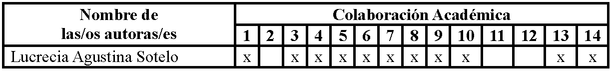 1- Administración del proyecto; 2- Adquisición de fondos; 3- Análisis formal; 4- Conceptualización; 5- Curaduría de datos; 6- Escritura – revisión/edición; 7- Investigación; 8- Metodología; 9- Recursos; 10- Redacción – borrador original; 11- Software; 12- Supervisión; 13- Validación; 14- Visualización.