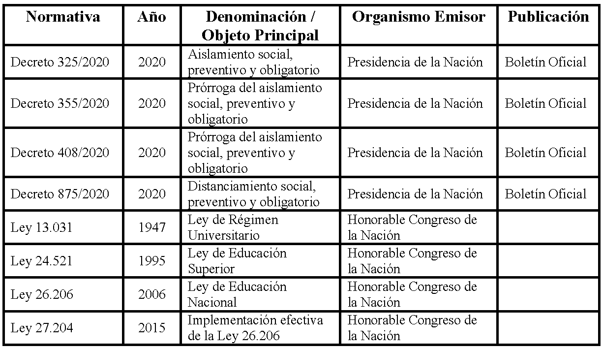 Este estudio se focaliza precisamente en esas transformaciones, centrando la mirada en las modalidades de ingreso a las universidades públicas argentinas y los procesos de migración a la virtualidad o a la hibridez, en respuesta al Aislamiento Social Preventivo y Obligatorio (ASPO) dispuesto por el gobierno nacional mediante el Decreto de Necesidad y Urgencia (DNU) 297/2020; situación que configuró un escenario inédito para las instituciones de educación superior, así como para los demás niveles educativos. Para afrontar esta situación, el Consejo Interuniversitario Nacional (CIN) estableció lineamientos generales que permitieron a las universidades, en el ejercicio de su autonomía, garantizar el derecho a la educación superior bajo las nuevas condiciones impuestas por la pandemia (CIN, 2020).