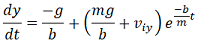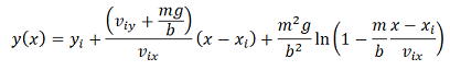 donde es una constante que depende de la forma del objeto y la masa del objeto. Resolviendo estas ecuaciones diferenciales se puede encontrar la expresión analítica para conocer la posición en cada instante de tiempo,