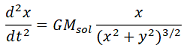 Las ecuaciones diferenciales que rigen este movimiento, considerando que el Sol se encuentra en la posición , son
