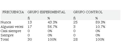 ~ Puntuación: Cada instrumento está conformado por las siguientes opciones: Nunca 0, Algunas veces 1, casi siempre 2,