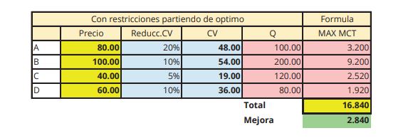 En caso de no disponer de capacidad para operar en los nuevos óptimos teóricos en forma independiente producto a producto, deberemos utilizar los métodos desarrollados en las ponencias citadas ut supra para encontrar un punto de producción factible.