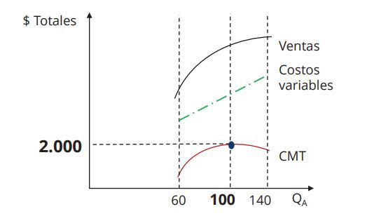 Lo que determina el siguiente comportamiento de Ventas, Costos Variables totales y Contribución Marginal Total: