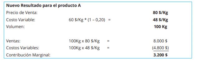 1. El nuevo costo variable unitario de A (CVA) es 48$/kg. Expresado en forma de algoritmo en función del precio