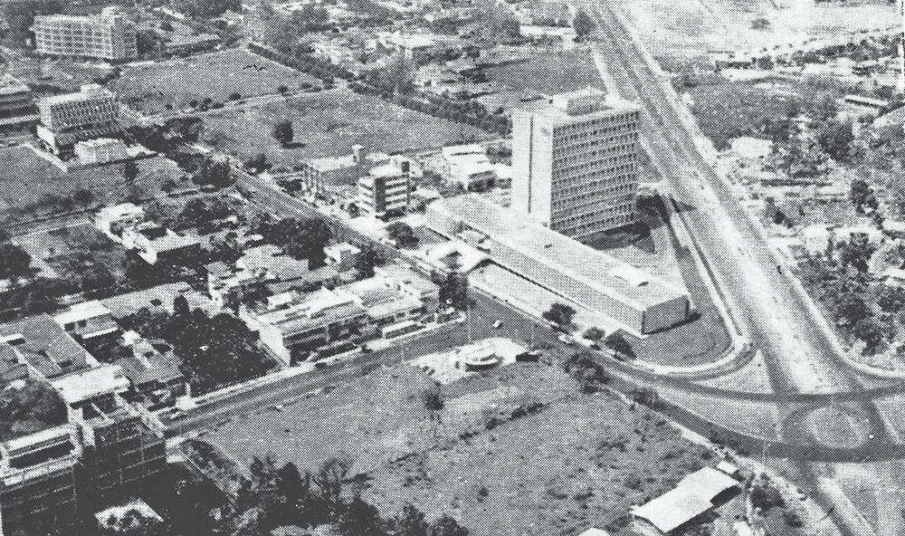 JJR: Bueno, fue un concurso nacional, promovido por una firma de ingenieros que iba a tener a su cargo la supervisión de la obra y ellos dijeron muy honestamente “nosotros no somos arquitectos, saquen a concurso y vamos a escoger un arquitecto”. Fue así como gané yo con un edificio, vamos a decir que refleja el concepto de Little House. ¿Ustedes lo conocen? Es un cajoncito montado en un cuerpo más bajo. Si lo queremos ver ahora, en aquel momento ni lo pensé, sino que así lo hice. El área pública abajo, un elemento administrativo, la garganta, el primer nivel de la torre, cafetería, áreas de estar y arriba oficinas. Le puse los ascensores, la escalera en un extremo, lo cual es un pecado mortal, pero tal vez fue el diseño equivocado del ingeniero estructural, porque cuando un edificio está agarrado de una punta y se produce algún temblor, el efecto es vertical. Entonces, el edificio tuvo muchos daños en la época del terremoto del 65. Pero volviendo al diseño, en la fachada oriente y poniente tenía una celosía metálica para proteger del sol, en ese entonces se había puesto de moda. En la parte de abajo, como era sólido, yo en la fachada que presenté en el concurso hice una raya y puse “mural”. Ahora, ya después, sacaron el concurso del mural y lo ganó Carlos Cañas. Luego cometieron el pecado de demolerlo. Ese es un pecado tremendo.