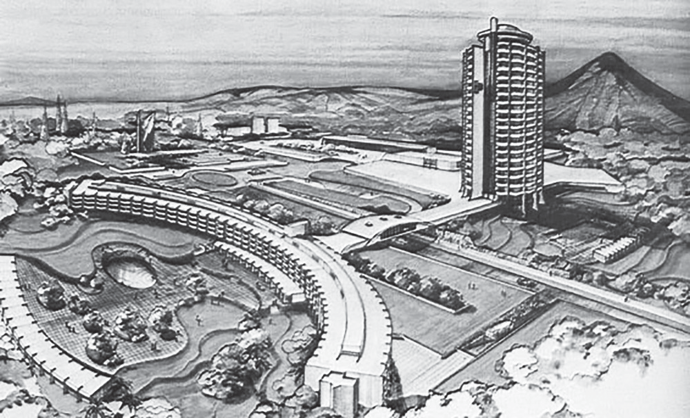 JJR: Sí, fue un concurso también, lo ganamos nosotros. Hice un edificio muy plástico. Si tú ves el cuerpo central, salen dos brazos así, como para recibir al público, es decir “pase adelante”. De este lado, está la administración y luego tiene al fondo la circulación vertical con pequeño pozo de luz, las oficinas… y se respetó 100% el área donde el terreno era malo. Se creía que porque el terreno era malo no se podía construir. Hoy le sacamos la tierra y la sustituimos, pero en aquel momento no tocamos por economía, pero si tú ves las fotos y la maqueta que yo tengo de todo eso, es una cosa muy plástica, muy agradable.