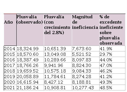 La ineficiencia en el uso del excedente productivo de explotación (plusvalía).