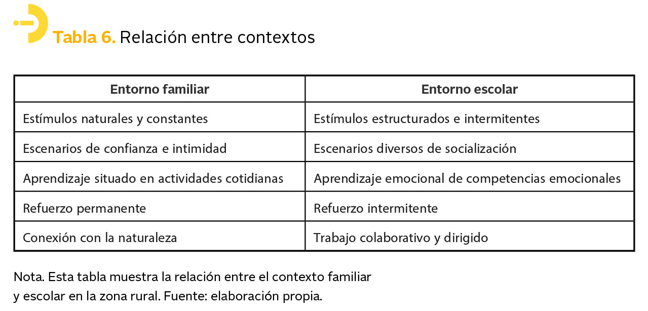 Para optimizar el desarrollo emocional, es crucial aprovechar las fortalezas de ambos entornos, en especial en contextos rurales, donde las labores agropecuarias refuerzan esta relación y favorecen la construcción de vínculos afectivos sostenibles (tabla 6).