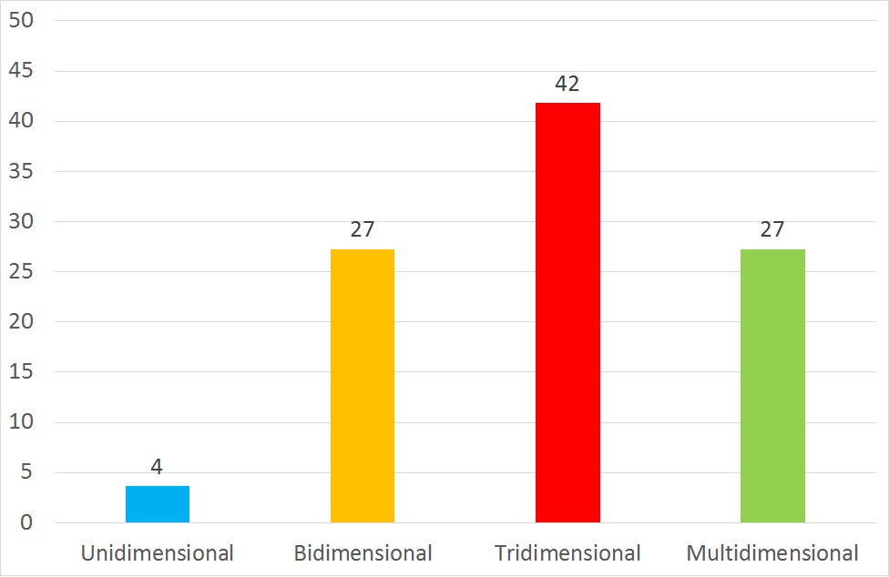 Los datos que se presentan en este trabajo son resultado del trabajo sobre una base de datos construida por la autora, procesada mediante SPSS3. El análisis retoma estas ocho dimensiones de las trayectorias de los dirigentes (universitaria, militante, política institucional, notoriedad, familia política, sindical, asociativa, recambio generacional), que son procesadas considerando los valores que asumen sus respectivos indicadores en cada trayectoria individual. De la combinación de estas 8 dimensiones y sus respectivos indicadores con valores dicotómicos resultan 128 posibles estructuras de capital político. Las categorías de una tipología más acotada que se presentan en el trabajo son resultado del procesamiento, a partir del cual se seleccionaron según su complejidad, los tipos más frecuentes construyendo cuatro tipos: unidimensional, bidimensional, tridimensional y multidimensional.4 Para cada una de estas estructuras posibles se identifican, en su interior, los tipos más frecuentes de combinación de especies de capital.